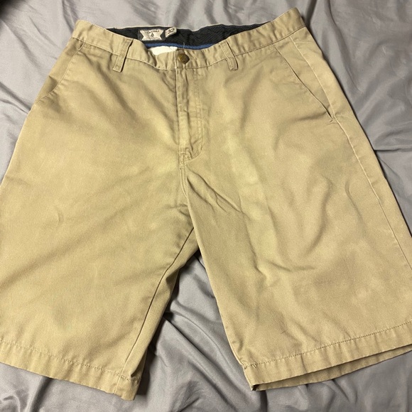 Chino volcom shorts. Don’t wear the style anymore. Does have a little bit of bleach stain, but barely noticeable.