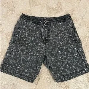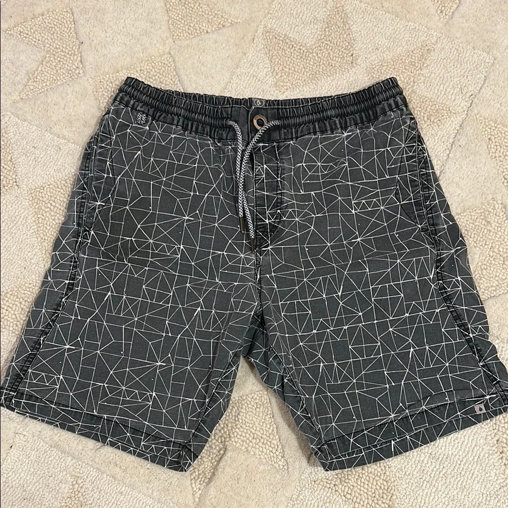 Stylish shorts with a geometric pattern. Features a drawstring waist for comfort. Missing button on back pocket.