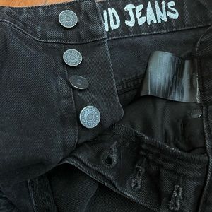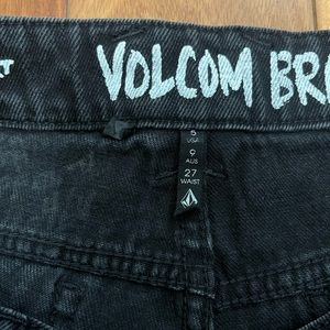 Black cut off Volcom Jean shorts. Button fly, front and back pockets. Size 5, waist 27. Clearing out closets look for more gently worn name brand items.