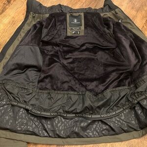 Volcom snowboarding jacket- such a nice fit, and super cozy with the velvet inside. Wrinkly from being in my winter gear box for a while because I was hoping it would fit again, but does not. Perfect condition!