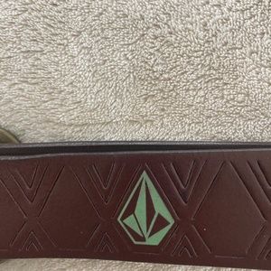 Volcom Stone Brown Leather Belt Aqua Logo Small
