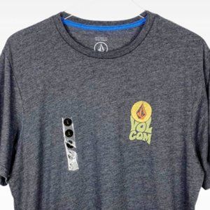 Volcom Stone graphic short sleeve t-shirt. Gray with small front graphic & large graphic on back. Crew neck. Modern fit. Soft. Fabric: 50% Cotton; 50% Polyester. NWT. Color may vary with lighting or device.