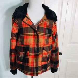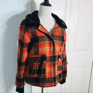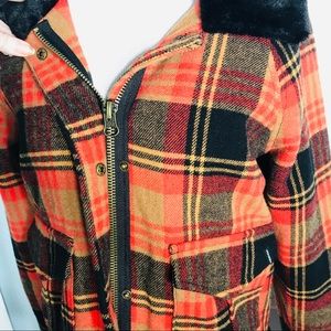 NWOT in perfect condition Volcom Stone Row Collection Plaid Jacket with faux fur collar. This high quality winter jacket will keep you warm and cozy! The warm and bright fall colors have a stylish contrast against the black trim. Convenient front snap pockets as well as slide pockets to keep your hands warm! Full zip up hidden by snap panel. Fun retro lumberjack country style with a touch of glam!