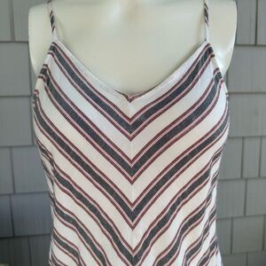 Sexy Volcom tank dress. White with muted red and grey stripes. Zippers up in the back and has adjustable straps.