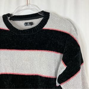 Volcom | Striped Polyester Black Gray Pink Stripe Pullover Sweater Womens Medium