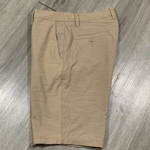 Volcom Surf & Turf Khaki Stripe 4 Way Stretch Flat Front Shorts size 33
