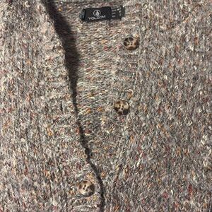 Super soft and stylish volcom sweater. Has a hood and some buttons on the front. Only visible sign of wear is the metal volcom tag has come off on one side. So comfortable. Open to offers. Comment with questions