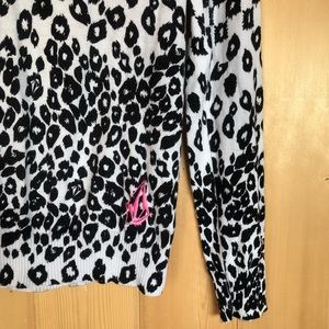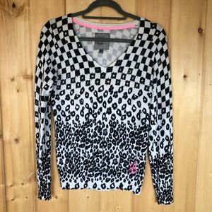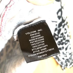 Retro and current. Graphic and animal print. v Neck sweater by volcom with pink logo. 80’s style. 100% cotton