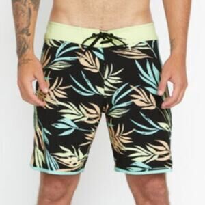 Hit the beach in style with these Volcom Boardshorts in size 31. Featuring a tropical peach palm leaf print, these swim trunks are designed with Mod-Tech performance including 4-way stretch, water-repellent fabric, and a secure Cinch Fly closure. Perfect for surfing, swimming, or lounging poolside, they deliver comfort, mobility, and standout style for all your summer adventures.