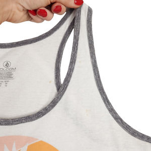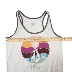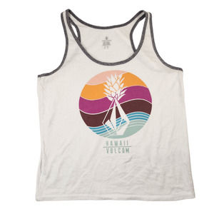 Volcom Tank Top Womens Medium White Hawaii Hawaiian Pineapple Surf Wave Graphic