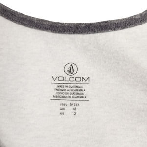 Good condition Hawaii Volcom tank top in a womens size medium. Wave like graphic design with a Volcom Pineapple. A few small dots/blotches of discoloration shown in photos, one dot on the back by the neck area and one close by that but on the inside of the top, one small faint dot on the front of one of the straps, can barely see that one.