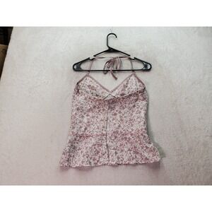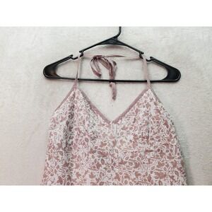 Volcom Tank Women Small Taupe White Sheer Lace Trim Open Back Halter Side Zipper
