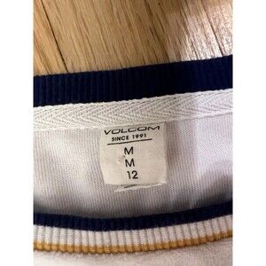 Volcom Terry Cloth Pullover Sweater Mens Medium White Blue Raglan Retro Surf