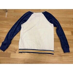 Volcom Terry Cloth Pullover Sweater Mens Medium White Blue Raglan Retro Surf