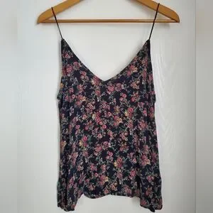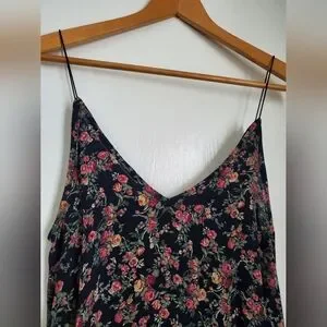 Chic black floral camisole tank top with spaghetti straps. Perfect for layering or wearing alone. Feminine and stylish. Like brand new!