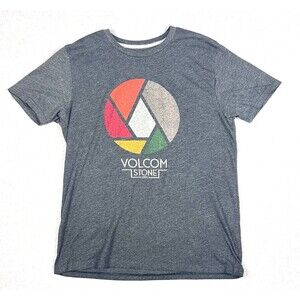 Volcom Top Mens Large Grey Splicer Graphic Tee Modern Fit Shirt Stone 1991 Retro