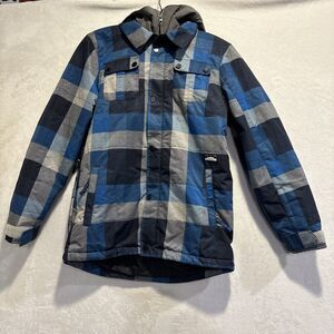 Volcom True to This Neolithic Insulated Jacket Kids Size Large Blue Gray Plaid
