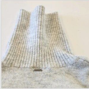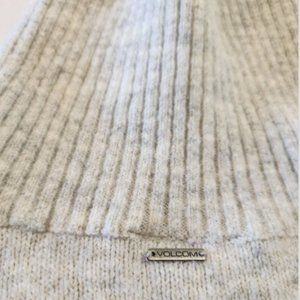 Volcom True to This Striped Turtleneck Oversized Sweater Dress Women's size Medium (8); Light heather cream/ gray with partial bold wide black stripes on one side only. Neck, hem and cuffs are ribbed. Drop shoulders. Hem and cuffs have ivory edges. Fabric has some stretch.