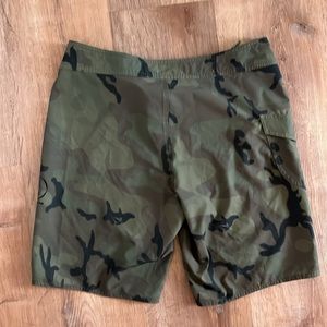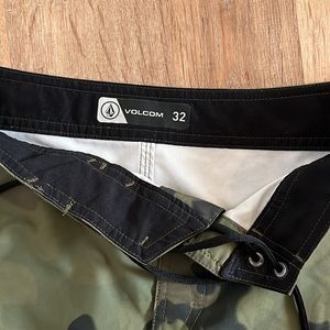 gently used Volcom trunk in a green camo pattern. 32 inches wide, 20 inches long