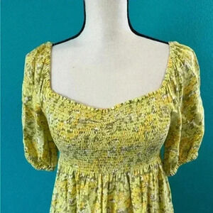 Volcom Women's Wanna Have Fun Mini green and yellow floral smocked Dress in size xs.
