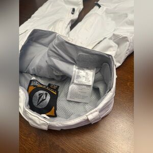 Versatile white ski pants. Features multiple pockets. Ideal for chilly snow day or skiing. Some marks from use.