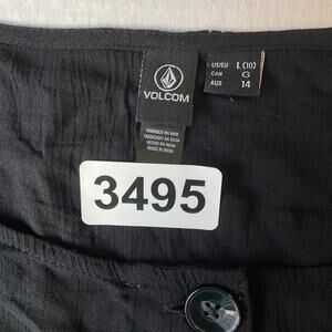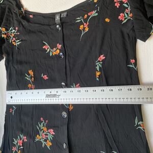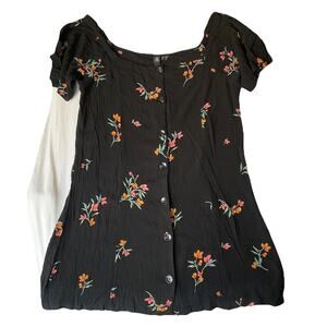 Volcom Women Dress L (10) Black Floral A-Line Button Short Sleeve Knee Length