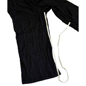 This black wide leg slacks combines style and comfort with its elastic waistband and tassel drawstring detail. Ideal for professional or casual settings.