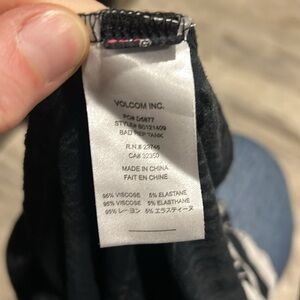 Volcom women’s black with white print tank top. Single front pocket. Super soft. Viscose/ elastane blend. Size Large