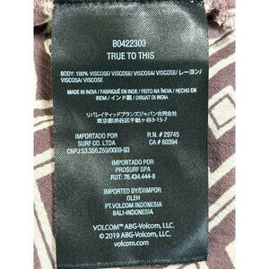 This Volcom tie-front crop top features a geometric pattern, offering a versatile style for casual or semi-formal occasions. Lightweight and breathable.