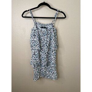 Volcom Womens Floral Tiered Sun Dress XS Lightweight Ruffle Strappy Blue/White