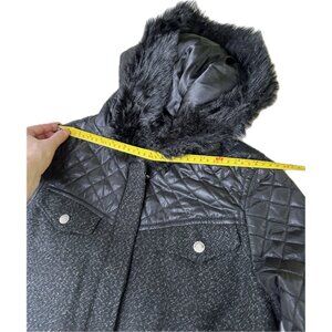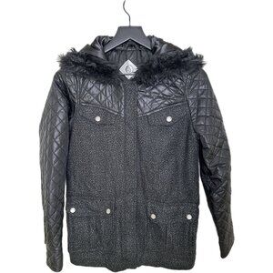 Volcom Women’s Jacket XS Black Quilted Faux Fur Hood Wool Blend Coat