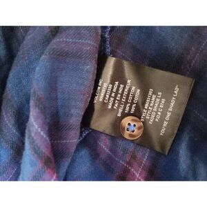 This Volcom womens medium-sized blue/red ombre button-down flannel shirt offers a stylish and comfortable fit. Crafted from high-quality cotton, it's ideal for any casual setting.