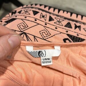 Volcom women’s pink with black print tank top. Single front pocket. Super soft. Viscose/ elastane blend. Size Large