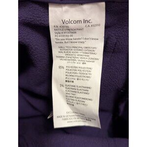 Volcom Womens Purple Insulated Snowboard Pants With Zippered Pockets & Back Flap