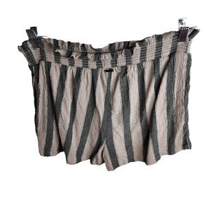 Volcom Women's Size Medium Coco Smocked Shorts and Strappy Cami Set in Striped Blue and White.