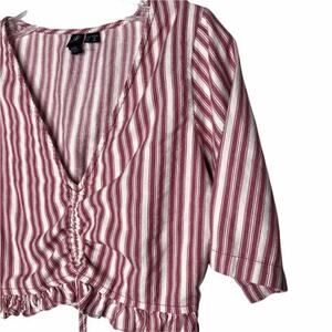 Volcom Striped Ruched Crop Top. Size Small. In great condition no stains no flaws. Half sleeve. V-neck. Elastic waist.