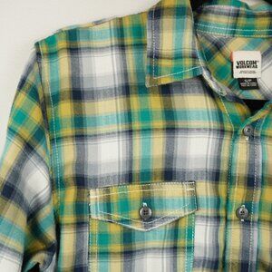 Volcom Workwear Men's Shirt Green Yellow Black Gray Plaid Size Small