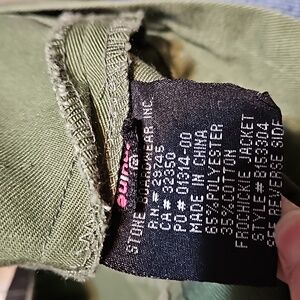 Volcom army green zippered jacket. Gently worn a couple of times. No rips holes or stains.