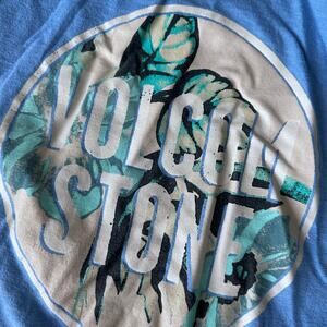 This is a Volcom Stone blue short sleeve t-shirt with a floral logo on back.