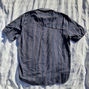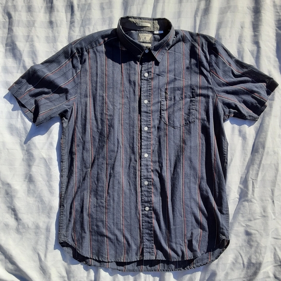 Dark blue striped Volcom short sleeve button down, size L, 60/40