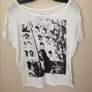 White slouchy-fit raw hem graphic tee from Volcom. Type on image reads "91". Fits well and can be worn slightly off-the-shoulder. Worn once.