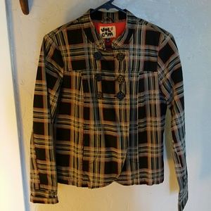 Super cute red/black/grey volcom jacket with big buttons on front. Fits like a small