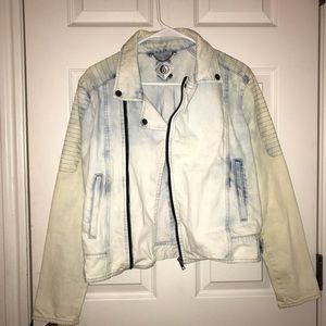 Light wash denim jean jacket, size medium. Lots of really cool unique detailing, very retro and vintage