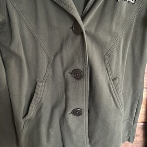 Old school Volcom jacket, no stains or tears. It is missing the cord for the hoodie. Patches on left chest and right arm intact. Buttons also all intact
