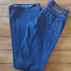 Bootcut/ small flare. One has pink stitching and other has more stretch. Both size 5