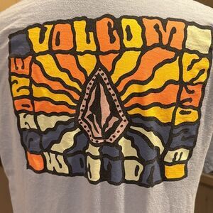Volcom light blue large center back & left chest graphic short sleeve tee shirt. 100% cotton. Small. Excellent condition. Nonsmoking home.