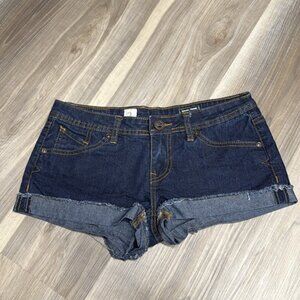 Volcom micro mini low rise denim jean shorts size 27