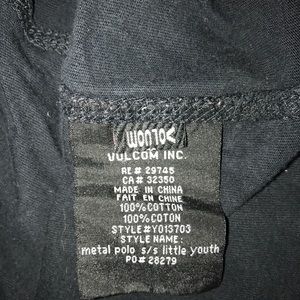 Volcom polo. Couldn’t find the size tag but I believe it is a small