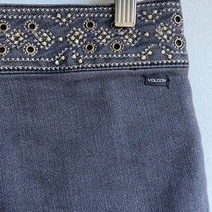 Volcom women’s stretch denim short in grey with back zip and waist embellishment size small