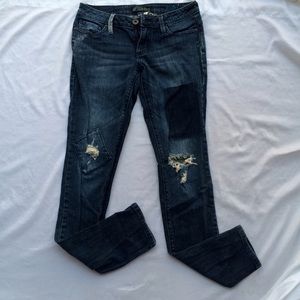 Size 3, very comfortable! Barely worn, great condition! Somewhat stretchy, Superskinny. Destroyed knees, hipster pattern in front, pattern belt strap on the back. Request more photos! FIRM PRICE NO OFFERS